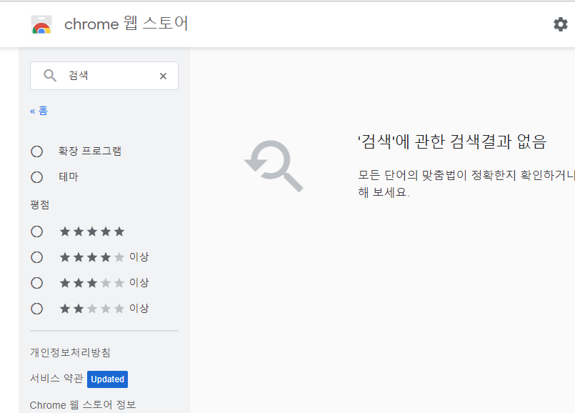 어느 날 갑자기 웹 앱스토어에서 확장 프로그램들이 하나도 검색이 안되기 시작했다면