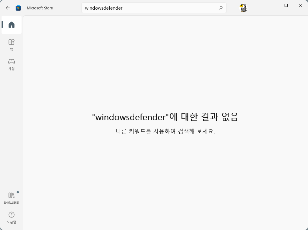윈도우11에서 윈도우 디펜더를 실행하려고 하면 윈도우 스토어로 연결되고 막상 스토어가 열리면 결과 없음이라고 뜨는 경우가 있습니다